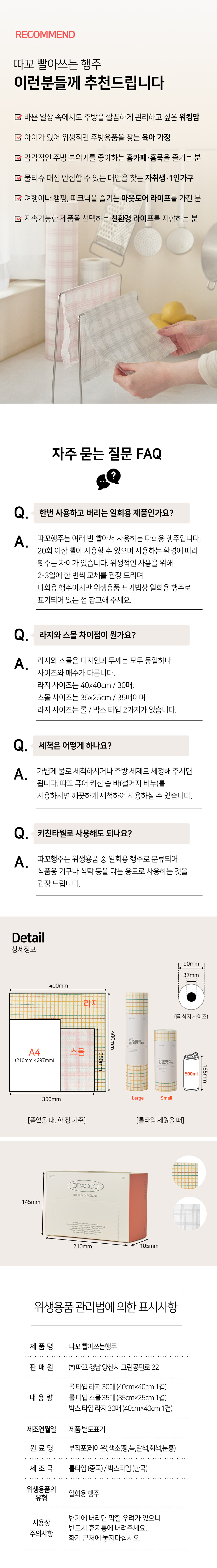 · 톡톡 뜯어 쓰는, 더 위생적인 롤 타입 행주